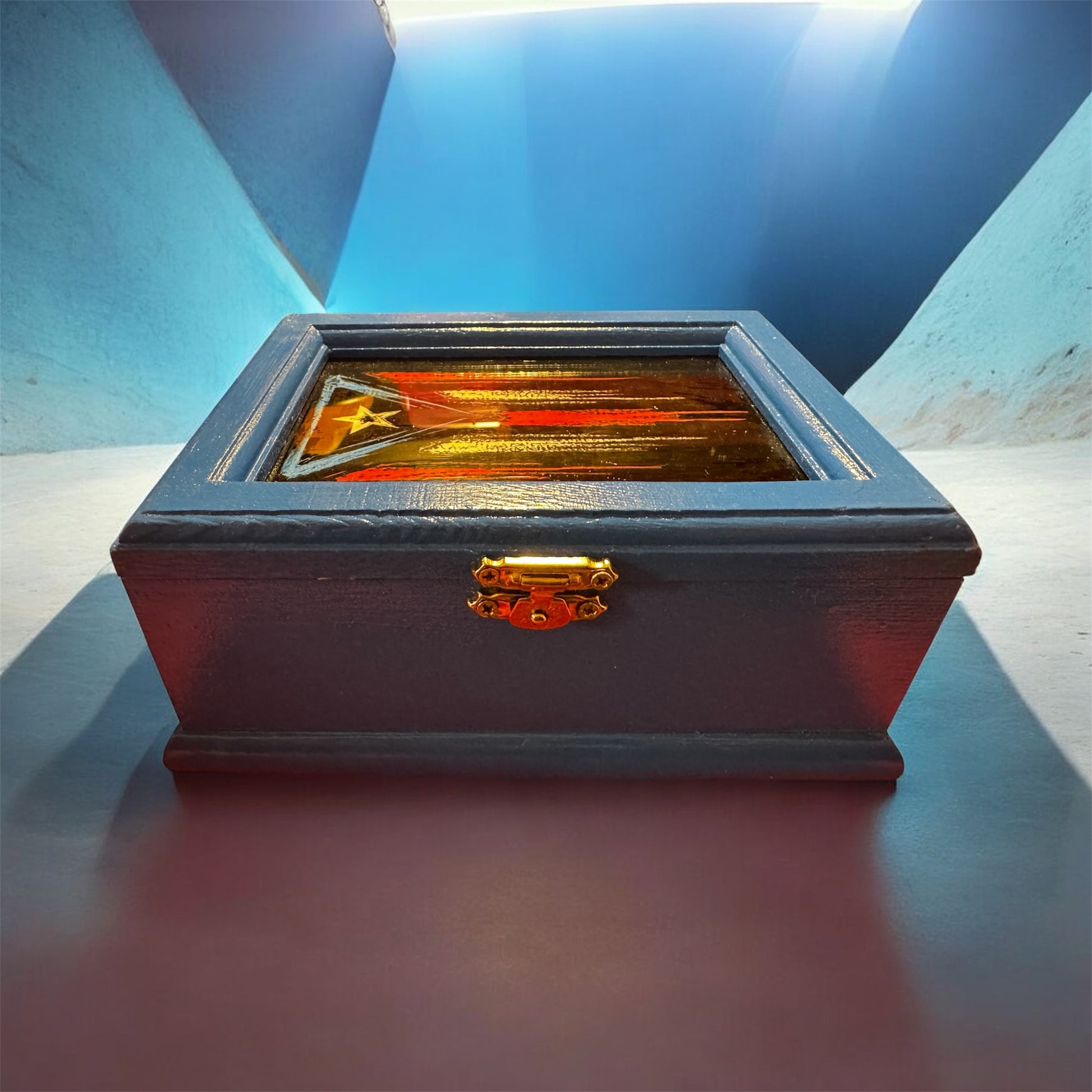 Handcrafted PR Flag design Dominoes with Wooden Storage Box